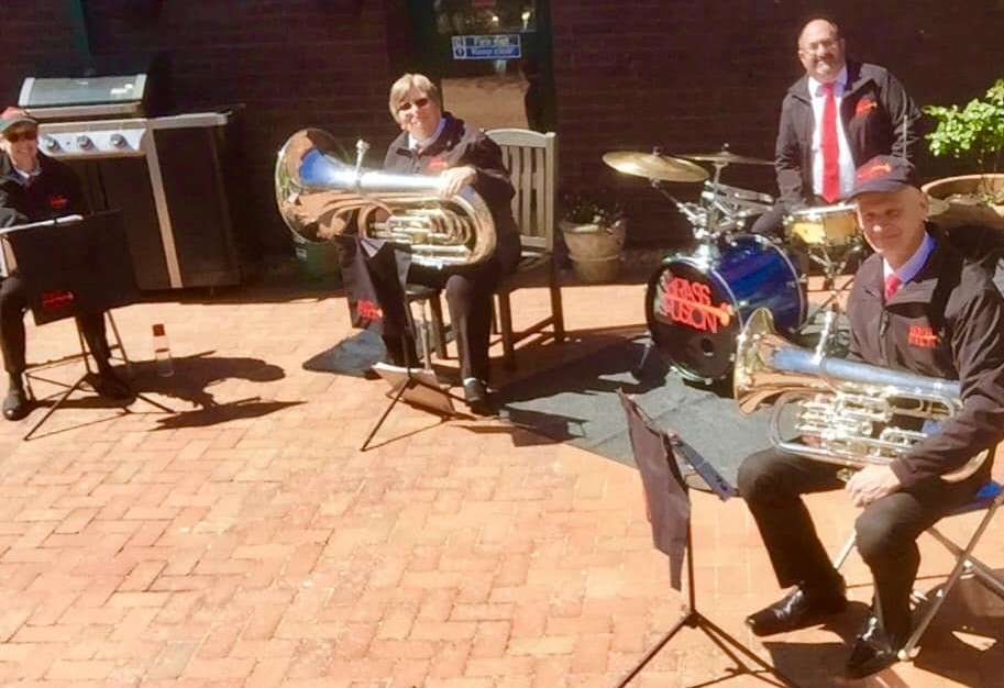 Six members of Brass Fusion were delighted to be playing for an audience again – if only from a distance.