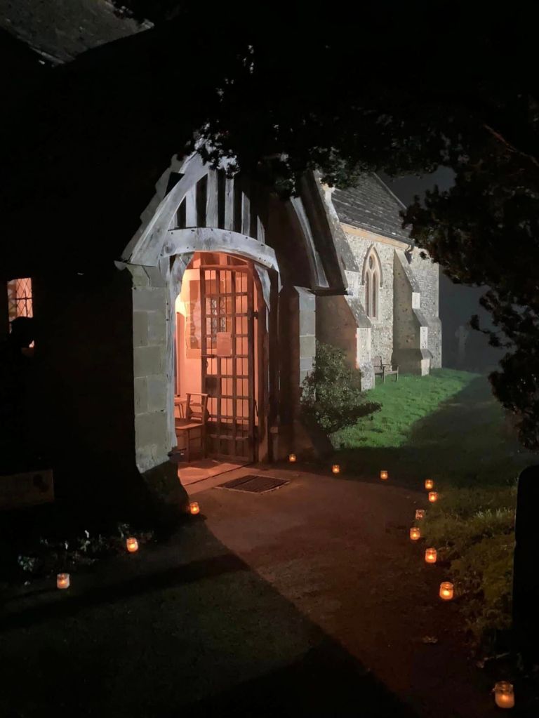 The group used nearly 200 candles to light inside the church and the path to the entrance.