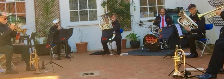 Six members of Brass Fusion were delighted to be playing for an audience again – if only from a distance.